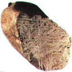 Железные метеориты практически полностью состоят из никелистого железа. Из расчетов следует, что наблюдаемая структура железных метеоритов образуется в случае, если в интервале температур примерно от 600 до 400 С вещество охлаждается со скоростью 1° - 10° С за миллион лет.