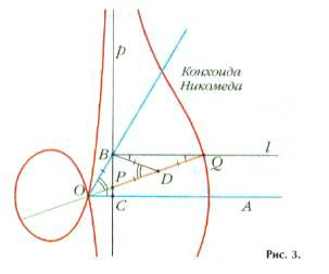 Никомед из Александрии (II в. до н. э.) использовал для решения этой задачи особую кривую — конхоиду
