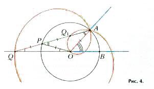 равнялся радиусу окружности. Как и на рис. 3, здесь образуются равнобедренные треугольники ОАР