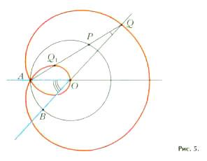 но за её основание возьмём нашу окружность (рис. 5); иначе говоря, эту конхоиду опишут точки Q
