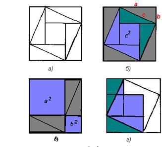 построенный на гипотенузе (рис. 2, б). Если квадрат со стороной с