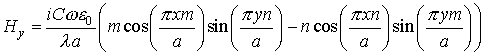 Возвращаясь к первоначально поставленной задаче об определении семейства Е-волн рассматриваемой направляющей структуры, согласно [2], в качестве f(x,y) выступают собственные функции , имеющие смысл продольной компоненты напряженности электрического поля для волны, определяемой выбором чисел m и n. Этим собственным функциям соответствуют собственные значения из выражения (17). Полное электромагнитное поле для этого волновода может быть определено из зависимостей поперечных компонент от и , вытекающих из уравнений Максвелла: