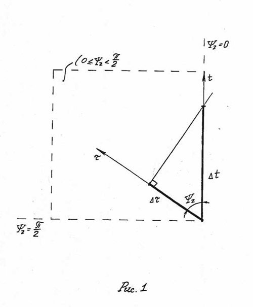 Наиболее наглядное решение можно получить в том случае, если провести следующую процедуру. Локальные "стрелы" Времени , ориентируются так, чтобы их начала совместились в одной точке - 0 . Эта точка представляет собой полюс, такой что .B этом случае, разумно ожидать, что одна из локальных "стрел" Времени, например , будет располагаться к локальной "стреле" Времени под некоторым углом ( Рис. 1 ). В дальнейшем, для удобства рассуждения обозначим этот угол через и назовем его - фазовым углом Времени, где z - это индекс, который необходим для выделения данного угла из семейства геометрических углов. Этот угол является калибровочным параметром, который позволяет установить корреляцию между исходными локальными "стрелами" Времени в том смысле, что отображение на осуществляется посредством фазового угла Времени, т.е. , где отображает . Данный угол измеряется в двух известных системах: 1) градус, минута, секунда; 2) радиантная мера. Переходя к количественным оценкам значений промежутков Времени необходимо схему на ( Рис. 1 ) модернизировать соответствующим образом ( Рис. 2 ). Проведем к концу локальной "стрелы" Времени ортогональную линию так, чтобы она одновременно пересекла конец локальной "стрелы" Времени . Назовем эту линию - нормалью Времени и обозначим через . Нормаль Времени должна отвечать следующим условиям: эта линия всюду перпендикулярна собственному Времени и всегда пересекает координатное Время .