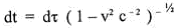 Посмотрим, каким образом связаны между собой показания часов в системах отсчета К и К'. Дифференциалы координатного t и собственного Времени скоррелированы следующей зависимостью