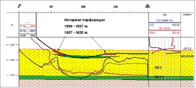 Рис.1. Разрез сеноманской залежи газа (пласт ПК1)
