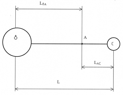 где L - расстояние между Землей и Луной; - масса, равная