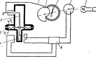 , обеспечивающий нахождение указателя на начальной отметке шкалы. Отклонение параметра от нулевого значения вызывает деформацию чувствительного элемента, сопровождаемую перемещением сердечника из среднего положения.