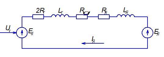 ЭДС якоря двигателя недоступна для прямого измерения. Косвенный датчик ЭДС якоря использует сигналы тока и напряжения якоря. Связь между током, напряжением и ЭДС якоря следует из уравнения электрического равновесия для якорной цепи. В области изображений по Лапласу это уравнение имеет вид: