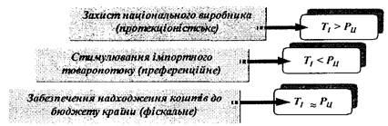• заохочення або стримування імпорту товарів залежно від ступеня їхньої обробки;