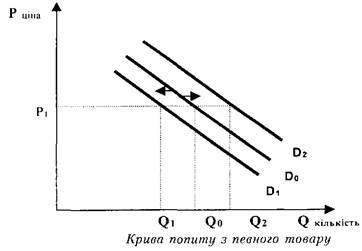 при зміні інших факторів, які впливають на попит. Зміною обсягу попиту прийнято називати зміну величини попиту при зміні ціни на товари чи послуги за решти однакових умов. Графічно це відповідає пересуванню ціни по кривій попиту з однієї точки в іншу, при цьому крива попиту залишається у тому самому положенні.