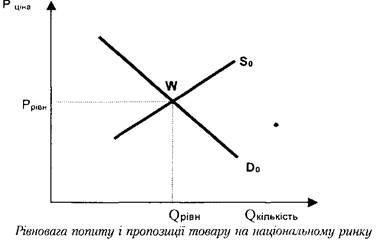 Крива попиту віддзеркалює потребу вітчизняних споживачів 0^, за ціною 80$ за одиницю. При цьому зберігається закономірність: чим більша ціна на даний товар, тим менший попит.