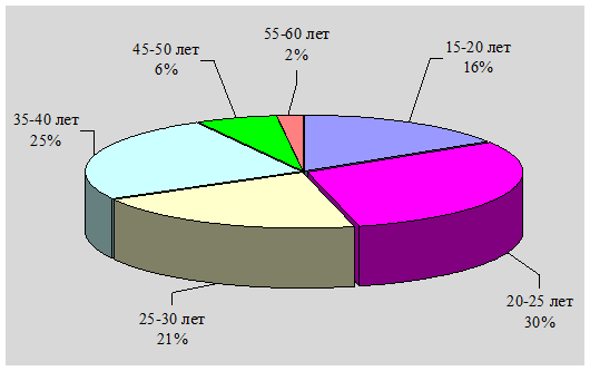 Рисунок 4.1. Возрастной состав покупателей универмага «Крыница»