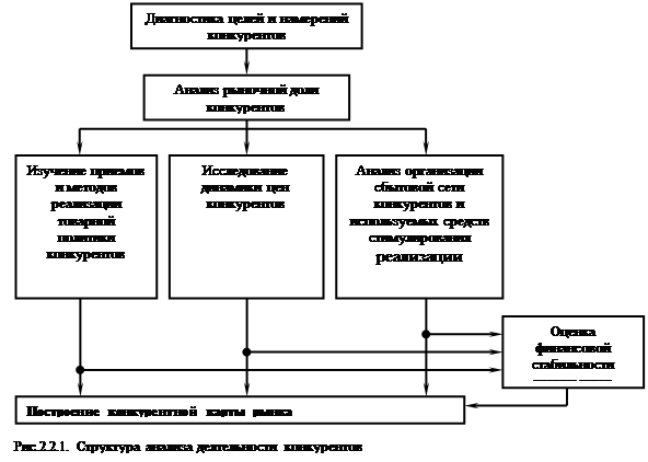Характер конкуренции между предприятиями отрасли определяется их целями, особенностями проводимой товарной и ценовой политики, организацией сбыта, приемами стимулирования реализации продукции, финансовым состоянием предприятия. Все это формирует рыночную позицию конкурентов, анализ которой включает ряд взаимосвязанных этапов (рисунок 1).