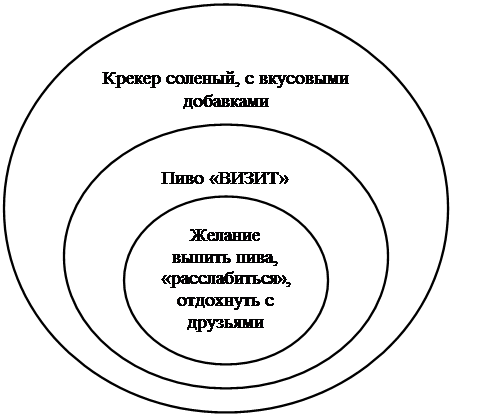 Рассмотрим некоторые виды товаров, выпускаемых ОАО «ВИЗИТ», с точки зрения представления товара в виде трехуровневой схемы, например крекер (Схема 3) и пиво «ВИЗИТ» (Схема 4).