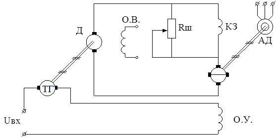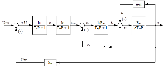 короткозамкнутой обмотки. Структурная схема двигателя состоит из безинерционного, интегрирующего и апериодического звеньев, параметры которых определяются сопротивлением якорной цепи Rяц