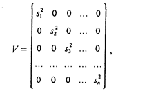 Пусть на первом этапе оценена линейная регрессионная модель с помощью обычного МНК. Предположим, что остатки еi независимы между собой, но имеют разные дисперсии (поскольку теоретические отклонения еi нельзя рассчитать, их обычно заменяют на фактические отклонения зависимой переменной от линии регрессии ^., для которых формулируются те же исходные требования, что и для єi). В этом случае квадратную матрицу ковариаций cov(ei, ej) можно представить в виде: