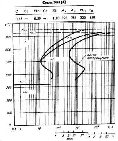 50Н – сталь доэвтектоидная легированная 0,5%С и 1%Ni.