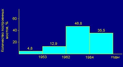 На рисунке 1 приведены данные о количестве мостов, построенных в разные периоды времени.