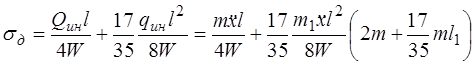 1.4. Напряжения в средней части балки