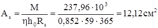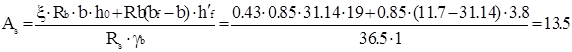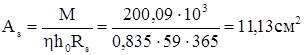 Площа перерізу робочої арматури обчислюється за формулою