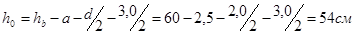 ho = h- 2-0,5×ds = 220-20-0.5×20 = 190 (мм).