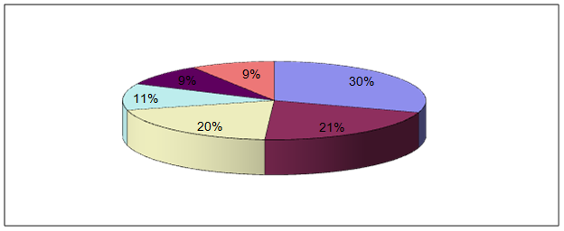 Рис. 1.1. Питома часткакраїн лідерів у загальному обсязі споживання замороженої плодоовочевої продукції, %.