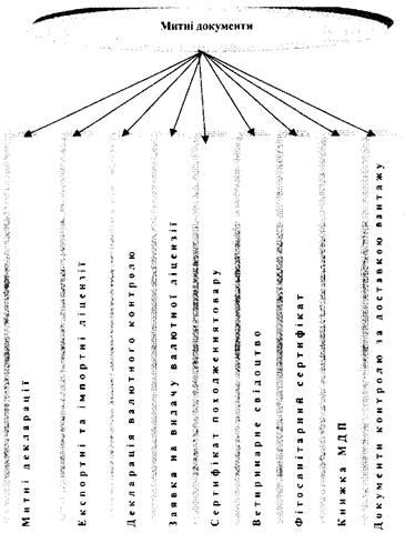 Митні документи необхідні для оформлення переміщення товарів через митний кордон держави подано в схемі. До митних документів відносяться: