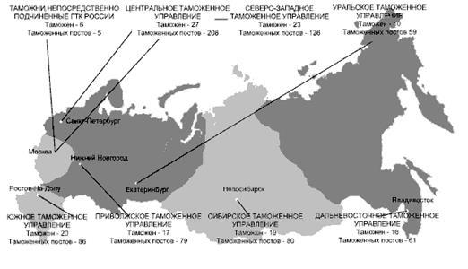 Рис.1. Схема размещения таможенных органов на территории России[1]