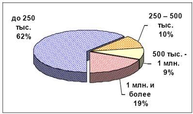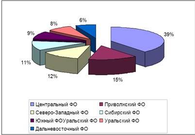 Как видно из диаграммы (рис. 1.1), наиболее заселенными являются Центральный, Приволжский и Южный округа. Отсюда можно предположить, что наиболее перспективными для развития и открытия новых кинотеатров и залов являются эти регионы.