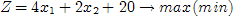 Общая стоимость продукции при этом составляет: z = 15x1