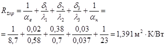 4. Приведенное сопротивление теплопередачи ограждающей конструкции составит: