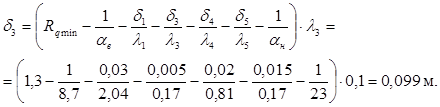 2) Толщина теплоизоляционного слоя: