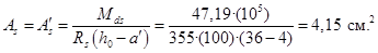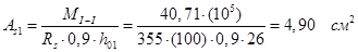 - площади поперечного сечения арматуры в колонне, соответственно требуемая по расчету и фактически установленная;