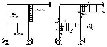 Мал. 25 - Розрахункова схема, епюри внутрішніх зусиль для заданої рами