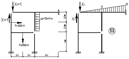 Для виконання кінематичної перевірки, побудуємо епюру внутрішніх зусиль, від одиничного значення невідомого – Х1