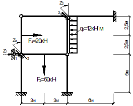За основні невідомі методу переміщень приймаємо кутові переміщення жорстких вузлів і лінійні переміщення вузлів заданої системи, які позначимо Z1