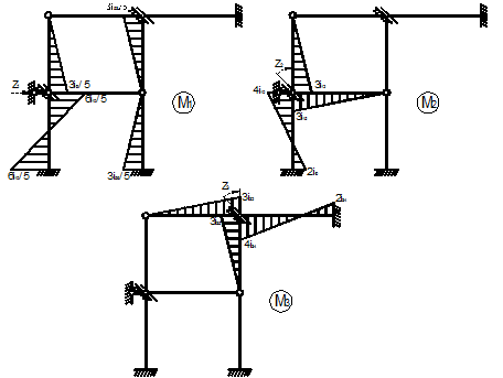Побудова епюр згинаючих моментів в основній системі методу переміщень від одиничних значень основних невідомих (мал. 3)