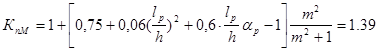 где – для элементов, имеющих закрепление растянутой зоны из плоскости деформирования, jу – коэффициент продольного изгиба для гибкости участка элемента расчетной длиной lp из плоскости деформирования; jm – коэффициент, определяемый по формуле