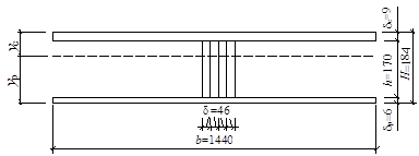 Плиты утепленные, под рулонную кровлю; обшивки из берёзовой фанеры марки ФСФ сорта В/ВВ (расчетное сопротивление растяжению Rф.р.=14МПа; расчетное сопротивление скалыванию Rф.ск.=0,8МПа; модуль упругости Еф=9000МПа); фанера соединяется с деревянным каркасом клеем марки ФР-12; ребра из сосновых досок II сорта (сечением 46 х 169 мм, расчетное сопротивление изгибу Rдр.и.=13МПа; модуль упругости Едр=10000МПа); толщина фанеры для верхней обшивки принята равной δс = 9 мм, нижней δр = 6 мм.