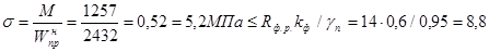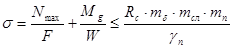В плоскости рамы расчет на прочность проводят на действие максимальных продольных сжимающих сил и изгибающих моментов от расчетных нагрузок по формуле:
