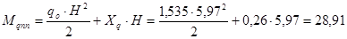 Мcтлев =- Мcт +хст∙H = -4,51+ 0,647∙5,97 = 0,647кНм