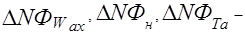 - поправочні коефіцієнти для розрахунку виправлення вчасно розкриття КГЧ на подовжню слагаючую балістичного вітри в межах АДТ Wax, ПДТ Wnx, ділянки польоту бойових елементів Wex, відхилення наземного тиску ΔHo, балістичне відхилення температури повітря ΔT і спільний вплив відхилень температури і наземного тиску повітря (ΔT, ΔHo) відповідно.