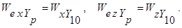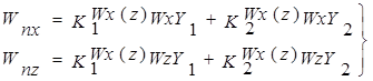 - поправочні коефіцієнти на бічну слагаючу балістичного вітру в межах АДТ Waz, ПДТ Wnz і ділянки польоту бойових елементів Wez, відповідно.