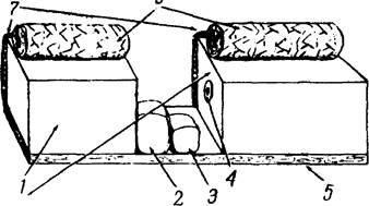 4 - електродетонатор; 5 - опора; 6 - пальмові бруствер; 7 - надувний поплавець