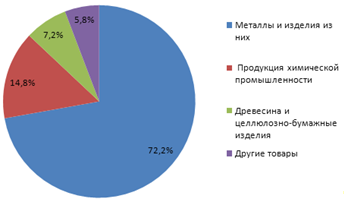 В экспорте высока доля металлов и изделий из них 75,6%. Импорт в значительной степени ориентирован на ввоз продукции химической и машиностроительной промышленности.