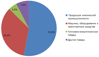 - продукция химической промышленности – 54,9%;