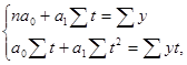 где n – число уровней ряда динамики; t – условное обозначение фактора времени порядковыми номерами; y – фактические уровни ряда динамики.