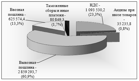 Структура таможенных платежей, перечисленных в федеральный бюджет представлена на рис. 2