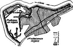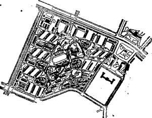 б) улиц (определение участков, не пригодных по рельефу для прокладки улиц) и установление наиболее выгодных трасс го родских магистралей;