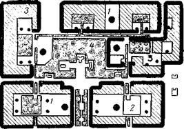 1 – подземный гараж; 2 – рампы для въезда и выезда; 3 – жилые дома